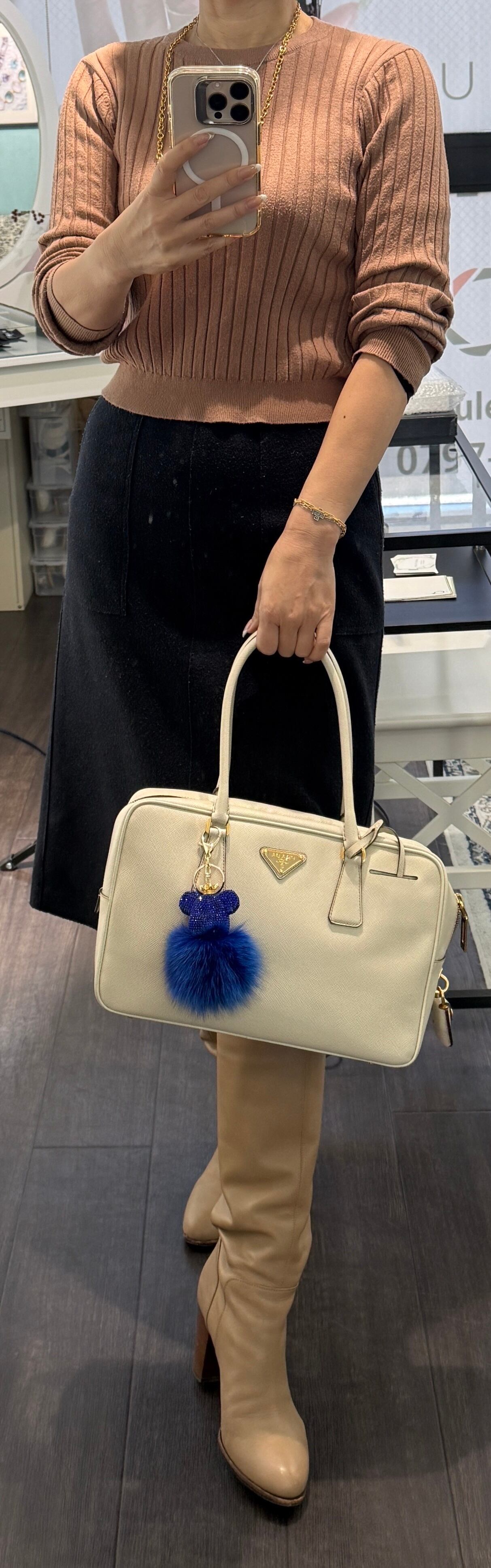 可愛らしいラインストーンクマちゃんファーベアは、日常のスタイルを一層引き立てるアイテムです。きらきらと輝くラインストーンが施されたデザインは、シンプルながらも目を引く魅力があります。カジュアルなコーディネートから、特別なシーンまで、幅広く活躍すること間違いありません。